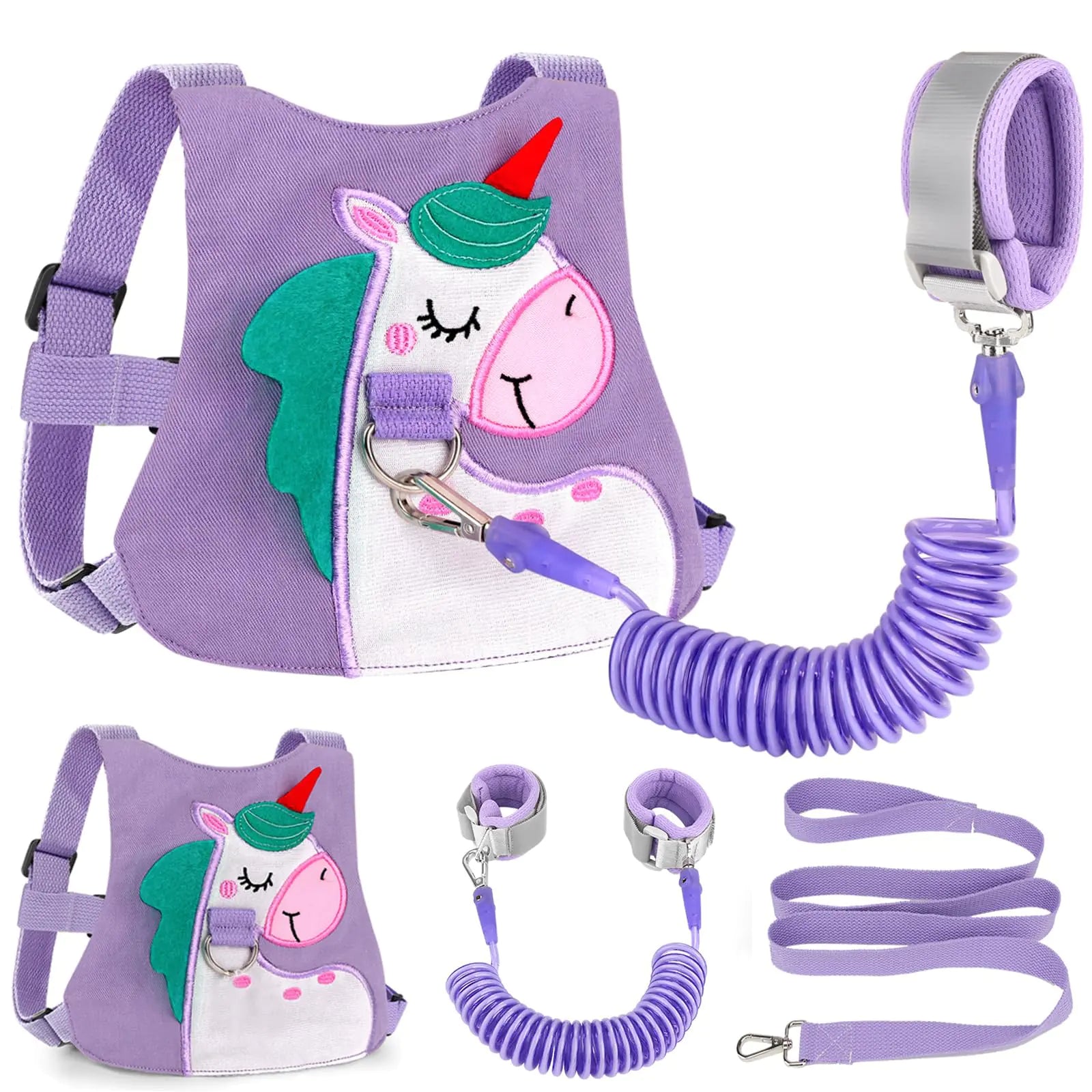 [Keep Your Baby Close and Security: With our reliable child anti-lost leash you can always hold your curious boy or girl close to you keep them out of danger at the same time give them more independence and bring you lot of peace mind. Soft & Comfortable: High quality cotton baby harness ultra-soft sponge padding wristband and steel-wire wrist link make the 3 in 1 child harness comfortable and lightweight. Breathable mesh cloth on the harness back is highly increasing the wearing comfort. Highly Adjustable: The mini toddler leash one size fits for most children from 1-5 years old under weights of 50 lbs. soft cotton shoulder and chest strap can be adjusted to accommodate the most comfortable position for each kid. Size of padded wristband also can be adjusted and the shrinking chain is stretchable. Adorable Design: Lovely and funny unicorn pattern keep kids innocent and stimulate imagination. Front extra pocket for snacks handkerchief the equipped anti-lost rope or other mini necessities 3 Different Usage: ①Child wear the harness attached with rope pulled by adult. ②Child wear the harness attached with wrist link pulled by adult whose hand wear the wristband. ③Parent and child both wear the wristband. 3 In 1 design can meet your various DIY combination needs suit to be used on all kinds of outdoor scenes]